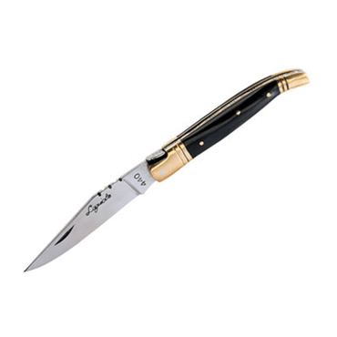 Couteau pliant marquage Laguiole, lame acier trempé 440, 2 mitres dorés, livré avec étui cuir