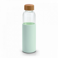 Gourde en verre borocilicate avec couvercle en bambou et étui en silicone. Cette gourde a une capacité de 600 ml et est fournie dans une boîte. ø68 x 231 mm