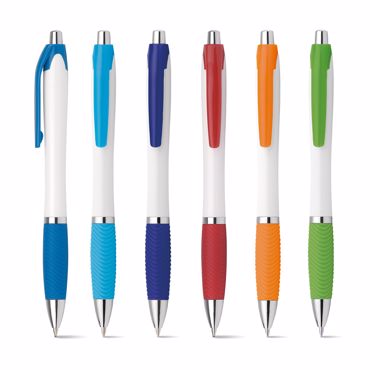 Stylo à bille avec clip et prise en main caoutchoutée.