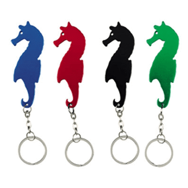 Decapsuleur porte cles aluminium en forme d'hypocampe 4 couleurs