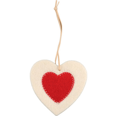 Décoration feutrine coeur blanc et rouge