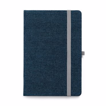 Bloc-notes A5 avec couverture rigide doublée en denim avec 192 pages lignées. Poche intérieure et un porte-bille (non inclus).