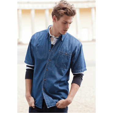 100 % coton stone washed. Boutons corne. Poche boutonnée.