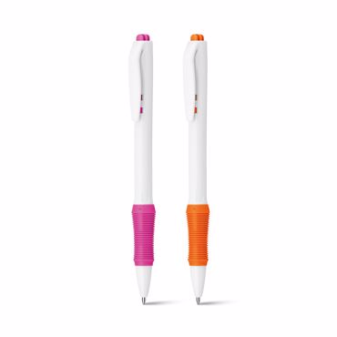 Stylo à bille en plastique avec grip en gomme. Encre bleue. ø12 x 140 mm