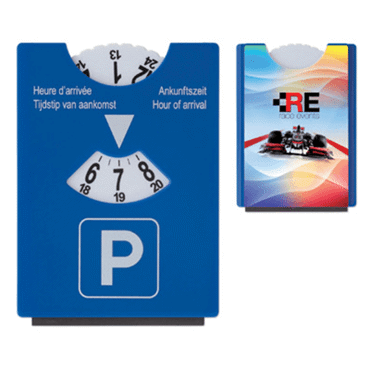 Disque de stationnement raclette pare-brise designed by Toppoint. Le disque de stationnement répond aux normes européennes (excepté la France). Grande surface de marquage sur l'arrière du disque.