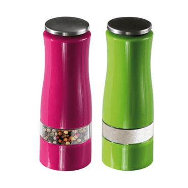 Duo salière et poivrière à piston, fonctionne avec un système de poussoir en acier inoxydable