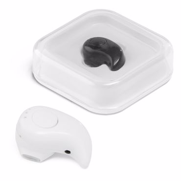 Écouteur wireless PS. Avec transmission bluetooth. Autonomie jusqu'à 2 h. Fonction pour décrocher appels et connexion à la playlist du dispositif mobil. Inclus câble pour chargement. Livré dans boîte en PS. Écouteur: 30 x 20 x 15 mm | Boîte: 60 x 60 x 20 mm