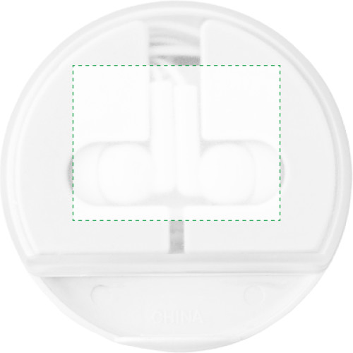 Ecouteurs filaires prise jack 3,5 mm livrés avec cordon de 125 cm dans un étui en plastique.