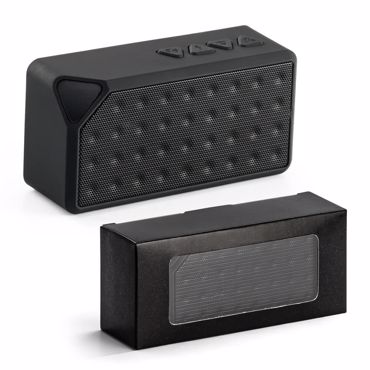 Enceinte avec micro. ABS. Finition gomme. Avec transmission bluetooth, connexion stéréo de 3.5 mm et lecteur de cartes TF. Avec 3W/4O. Autonomie jusqu'à 3 h. Fonction pour décrocher appels, contrôle du volume, connexion aux playlists des dispositifs mobiles et radio FM. Inclus câble USB pour chargement. Livré dans coffret cadeau. 108 x 55 x 38 mm | Coffret: 130 x 58 x 40 mm