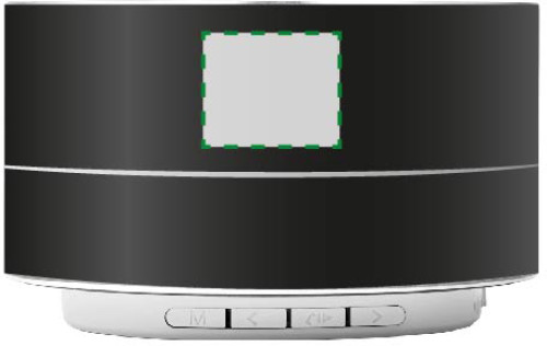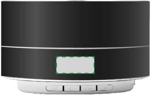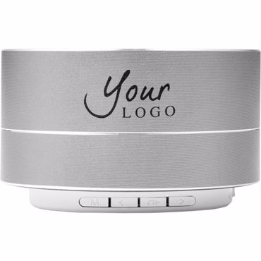 Enceinte sans fil en aluminium d'une puissance de 3 W avec éclairage, munie d'une batterie Li-ion de 450 mAh, livrée avec câble de charge. Durée d'écoute : 2h30.