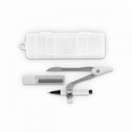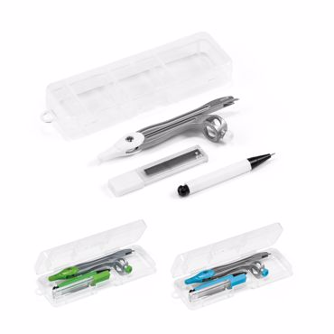 Ensemble de géométrie. Coffret en PP avec 3 pièces: 1 compas, 1 porte-mine et 10 mines 0'5. 128 x 42 x 20 mm Sachet individuel, PP box
