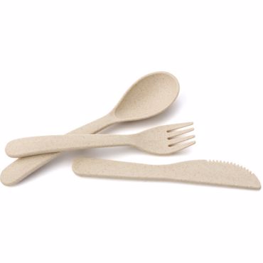 Etui antibactérien en fibre végétale et PP contenant fourchette, couteau et cuillère