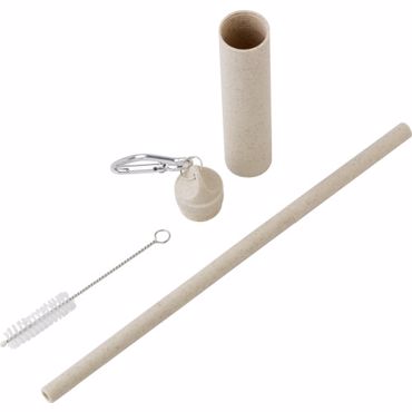 Etui contenant une paille démontable en paille de blé, livré avec goupillon