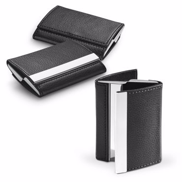 Étui pour cartes de visite. Métal et simili cuir. Livré dans boîte. 93 x 67 x 19 mm | Boîte: 98 x 72 x 22 mm Sachet individuel, Boîte noir