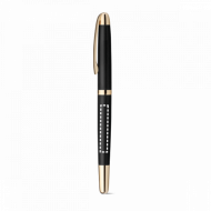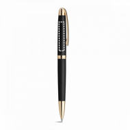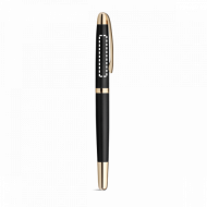 Set de stylo à bille et roller en metal founis dans un coffret cadeau rembourré. Fourreau noir, Stylo sous polybag, Coffret cadeau, Roller sous polybag