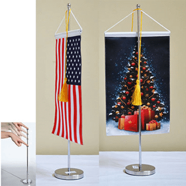 Fanion Drapeau de table recto verso.-Decouvrez les Desk Wing Flags, Banner Flags et Drapeaux telescoptiques. Ces petites voiles sont parfaites pour attirer l'attention ou in n'y a pas beaucoup d'espace publiciaire disponnible. ils prennent tres peut d'espace et sont ideales pour comptoirs, caissons de presentation, salons, bureaux, conferences, point de vente, reception. La pluspart peut etre imprimes une face ou double faces. Faciles a installer et tres stables.