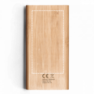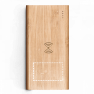 Chargeur de batterie portable en bambou. Batterie au lithium. Capacité de 5'000mAH. Durée de vie = 500 cycles. Entrée / sortie 5V / 2A. Indicateur de charge, 1 port micro USB, 1 port USB de type C et 1 port USB. Puissance de sortie sans fil, maximum 5W. Compris un câble USB / micro USB pour le chargement. Compatible avec les smartphones dotés de la technologie de charge sans fil. Livré dans une boîte cadeau. 140 x 70 x 12mm