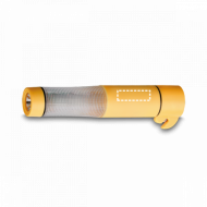 Marteau de sécurité en plastique muni d’aimant, coupe-ceintures de sécurité, lampe LED (1 blanc + 3 rouges avertisseurs). Inclu 2 piles AA. Livré sous boîte. ø38 x 193 mm