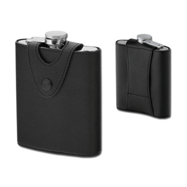 Flasque de 200 ml en acier inox et cuir imité. 9,5x11x2 cm