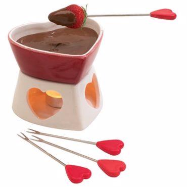 Set de fondue à chocolat ""Sweet heart"" comprenant un réchaud en céramique en forme de coeur, 4 pics à fondue coeur . Bougies non incluse emballage cadeau