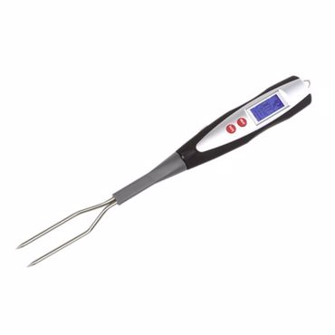 Fourchette à BBQ "Maitre" avec thermomètre:poignée en PVC, 2 boutons de contrôle rouges, écran LCD (°C et °F)