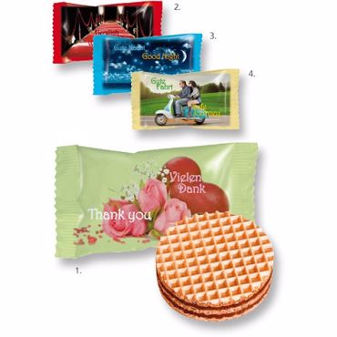 Spécialité autrichienne. Gaufrette croustillante fourrée au cacao à la crème de noisette (84?%), sous cellophane luisant blanc