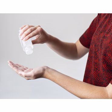 Gel hydroalcoolique d'une contenance de 100 ml composé de 70% d'alcool produit en Europe.