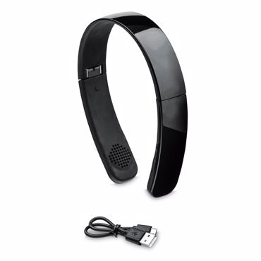 Écouteurs audio bluetooth pliables et reglables en plastique dans une boîte cadeau en papier. Spécifications techniques: CSR Bluetooth V4'0 permettant la connexion simultanée entre deux téléphones portables avec atteinte de 10 m, durée de rechargement 2–3 h, durée de la lecture 5–6 h, microphone incorporé pour les appels téléphoniques, commande directement sur l’haut-parleur. Compatible avec tous appareils dotés de bluetooth, USB/Micro USB câble inclus. boîte 165 x 50 x 117 mm