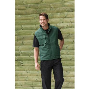 ? 260 gr/m2 ? ext.: 65% polyester, 35% coton canvas ? Int: 150 gr/m2 rembourrage polyester ? doublure: 100% polyester ? revêtement teflon anti-tache ? pan de dos pour plus de confort ? bord élastique aux emmanchures ? fermeture à glissière complète avec bande pare-vent ? poches avant verticales avec fermeture à glissière ? poche de poitrine droite intérieure et extérieure ? accès à gauche pour personnalisation ? lavable en machine à 60°C ? séchage en machine à tambour.