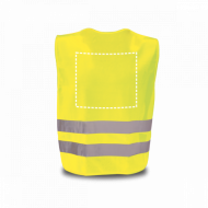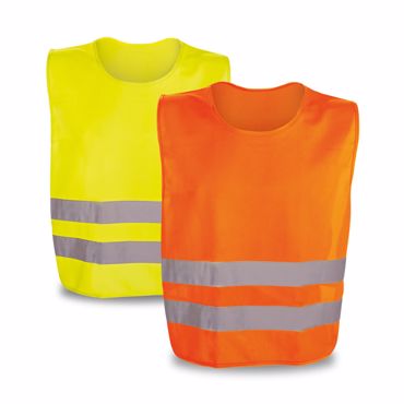 Gilet réflecteur. 100% polyester. Conforme à la norme EN1150. Avec 2 bandes réfléchissantes horizontales. Elastiques sur les parties latérales. Produit à usage non professionel. Taille unique: 540 x 620 mm