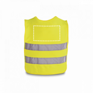 Gilet réflecteur pour enfant. 100% polyester. Conforme à la norme EN1150. Avec 2 bandes réfléchissantes horizontales. Attache velcro latérale. Produit à usage non professionel. Taille unique: 370 x 470 mm