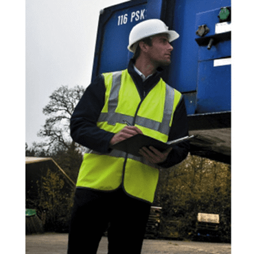 ·150 g/m² ·100% polyester ·biais gris en polyester ·fermeture auto-agrippante ·taille généreuse (pouvant être porté sur les vestes) ·bandes 3M? Scotchlite? de 50 mm ·EN 1150 ·conforme aux directives 89/686/EEC