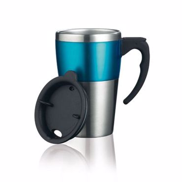 Gobelet à double parois Highland. Mug 350ml à double parois en acier inoxydable, anneau, poignée et couvercle en ABS