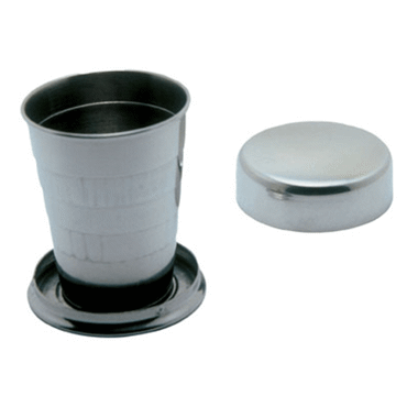Gobelet de voyage télescopique (ou pilulier) en acier inoxydable S/S304. Contenance 60 ml.