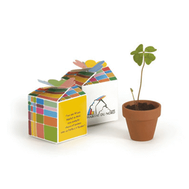 Mini kit 55 mm Présentation : Mini pot de semis en terre cuite. Clin d'oeil écologique à petit prix. Composition : 1 pot terre cuite ø 55 mm, 1 plaquette de terre de coco, 1 sachet standard de graines communes. Envisageable avec des graines bio (Semences issues de l’Agriculture Biologique, certifiées par FR-BIO-01). Longueur : 65 mm. Largeur : 57 mm. Hauteur : 50 mm. Poids : Environ 60 gr. Personnalisation : Le fourreau est imprimé en quadrichromie R° à votre communication, sur du papier issu de forêts gérées durablement avec des encres végétales et protégé par un vernis à l'eau sans solvant. Options : Tampographie sur le pot en terre cuite. Quantité minimum : 500ex. Prix indiqué hors frais techniques et frais de transport