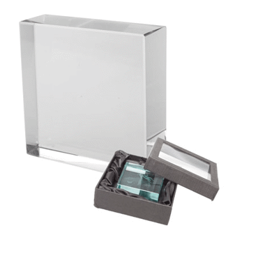 Ce grand bloc de verre gravé est un beau cadeau qui reste en permanence sur le bureau.