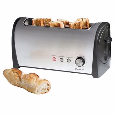 Grille pain métal pour baguette ou toast, thermostat de contrôle, décongélation/ réchauffage/ éjection immédiate, ramasse miettes, emplacement pour ranger le câble électrique.