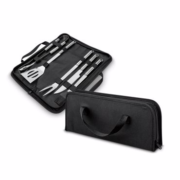 Set de 5 pièces pour grillade en acier inox dans un étui en nylon. étui 410 x 42 x 160 mm