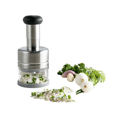 Hachoir en acier inoxydable, diamètre 9,25 cm à piston, lames pivotantes à 60° pour hacher finement tous types d?herbes aromatiques, oignon, ail, échalote, compatible lave-vaisselle,