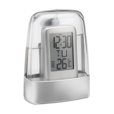 Horloge à mécanisme à eau REFLECTS CARPENTRAS-plastique, argenté, Mode 12/24 heures, CE, Date, Thermomètre, GREEN, Fonction réveil, emballage individuel REFLECTS Dim Packaging : 73x118x160 mm