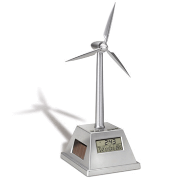 Horloge avec éolienne alimentée par capteurs solaires REFLECTS WOKINGHAM-plastique, argenté, piles incluses, CE, solaire, Thermomètre, Horloge, GREEN, Fonction réveil, Indication jour, emballage REFLECTS