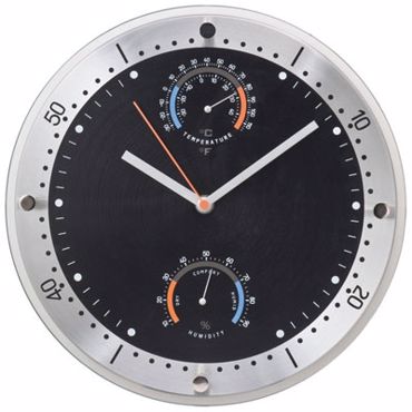 . Horloge de grande qualité en métal et verre avec hygromètre et thermomètre.