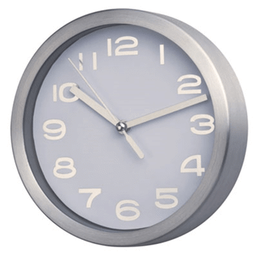 Small is beautiful! Vos clients seront ravis par cette horloge en aluminium élégant. Grâce à ses chiffres sur le cadran, cette horloge élégante vous offrira un look original. 1 Pile AA non incluse. Marquage par gravure laser. Emballage individuelle.