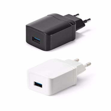 Adaptateur Qualcomm 3'0 en ABC avec entrée USB 2'0. Le chargeur a une tension d'entrée de AC 100V-250V 50-60Hz 0'35A et une tension de sortie de DC5V/3'1A,9V/2'0A,12V/1'5A 18W. 42 x 25 x 85 mm