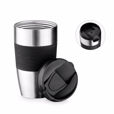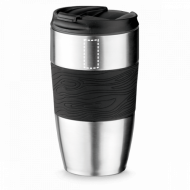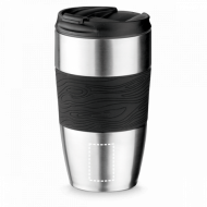 Verre en acier inoxidable à double paroi avec couvercle. Prise en main en silicone. Capacité jusqu'à 410 ml. Livré dans une boite. ø84 x 153 mm
