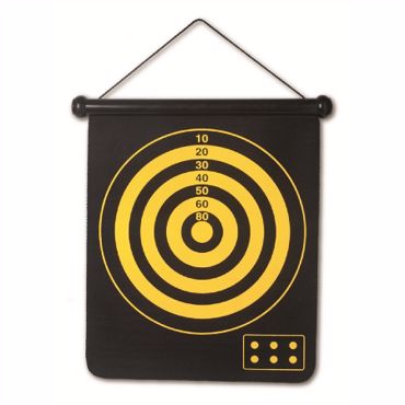 Jeu de 6 fléchettes et cible 2 faces magnétiques.