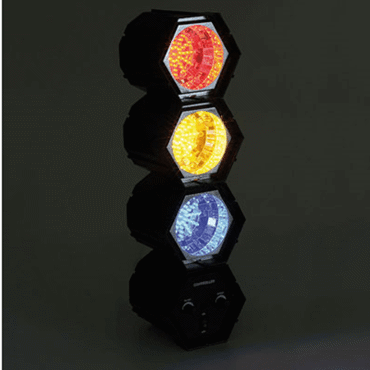 Jeu de lumières disco avec 3 spots emboitables et modulables de 47 LEDs, couleur rouge, jaune, bleu, vitesse des flashs réglable manuellement par commutateurs et défilement au rythme de la musique grâce au microphone intégré