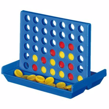 Jeu "4 in a line" avec jetons rouges et jaunes dans une boîte cadeau