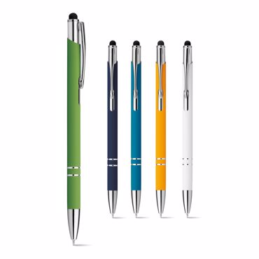 Stylo en métal avec pointe tactile et finition en gomme. Sachet individuel