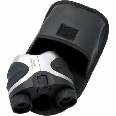 Jumelles 8 x 22 en gomme et plastique livrées dans un étui.